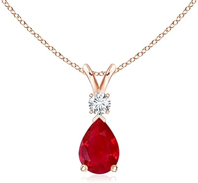 Natural Ruby Teardrop Pendant Necklace with Diamond for Women, Girls in Sterling Silver / 14K Solid Gold/Platinum with 18" Chain, July Birthstone Jewelry Gift for Her Birthday, Anniversary