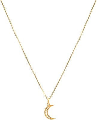 Diamond Moon Necklace, 14k Yellow Solid Gold, Zoe Lev Jewelry