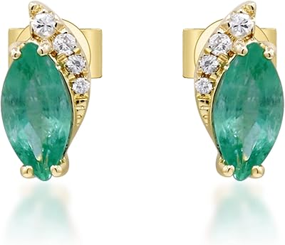 10K Yellow Gold Natural Zambian Emerald Earrings with Natural Diamonds for women | Ethically, authentically & organically sourced Marquise-cut Emerald hand-crafted jewelry for her