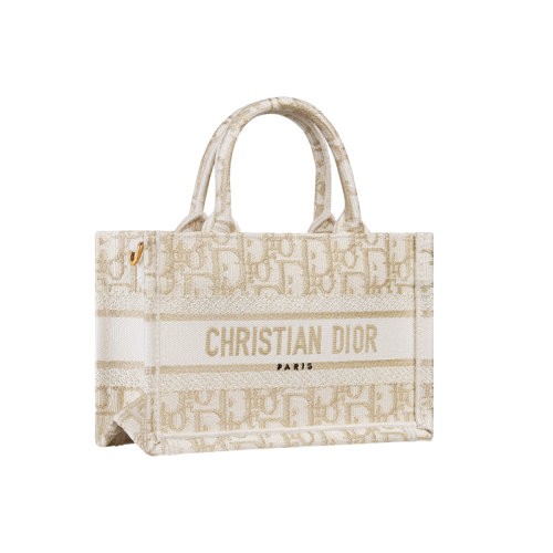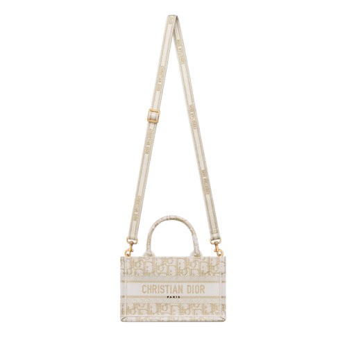 DIOR/迪奥 23新款 BOOK女士迷你白色/金色调刺绣印花配肩带托特包 S5573CTQR_M981(新品包包)