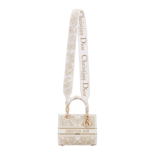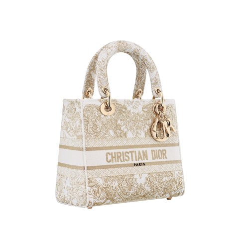 DIOR/迪奥 23新款 LADY D-LITE女士中号金白蝴蝶环游世界图案刺绣肩背手提包 M0565OESV_M01E(新品包包)