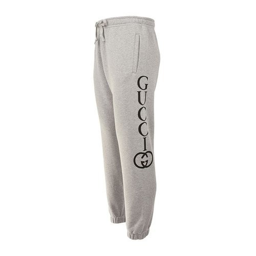 GUCCI 古驰 男装 服装 灰色棉质LOGO印花休闲 男士运动裤裤装