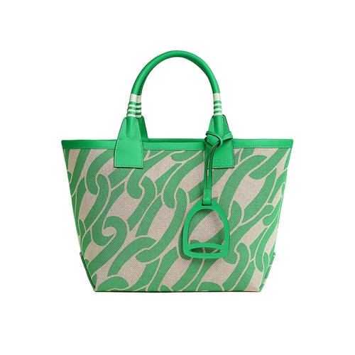 【新品包包】HERMES/爱马仕24新款 女士绿白交替帆布配皮马镫形手提包H084533CKAA