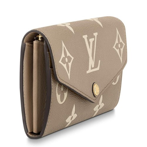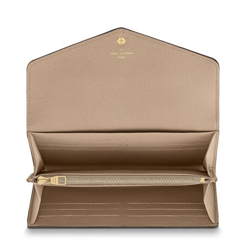 【包税】Louis Vuitton/路易威登 22春夏新款SARAH系列 鸽子灰/奶油白双色调老花印花粒面牛皮革金扣翻盖开合长款钱包M81049(包包)