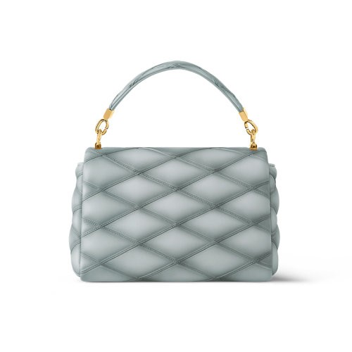 (新品包包)Louis Vuitton/路易威登 23新款 女士中号灰蓝色菱形绗缝羊皮革扭锁翻盖单肩包 M24186