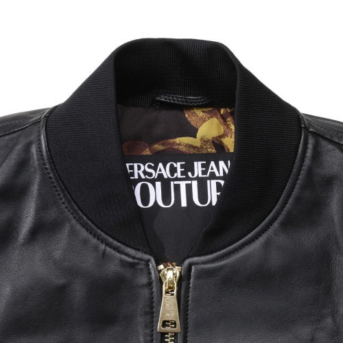 【服装】VERSACE JEANS COUTURE/VERSACE JEANS COUTURE 男士V字徽标刺绣复古拉链短款皮衣夹克 76GAVP06 CPPS3